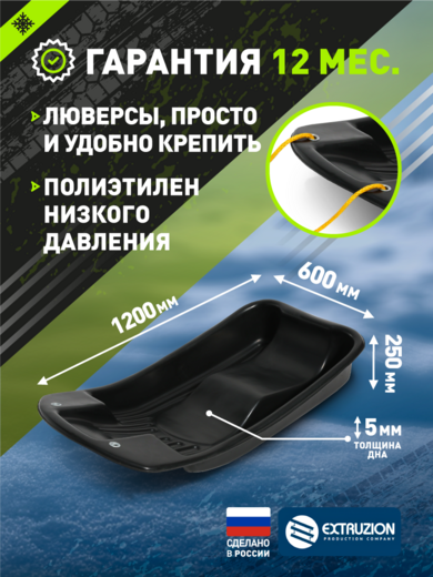 Санки ледянки для катания с горок с люверсами (сани волокуши) pitbikemarket.ru