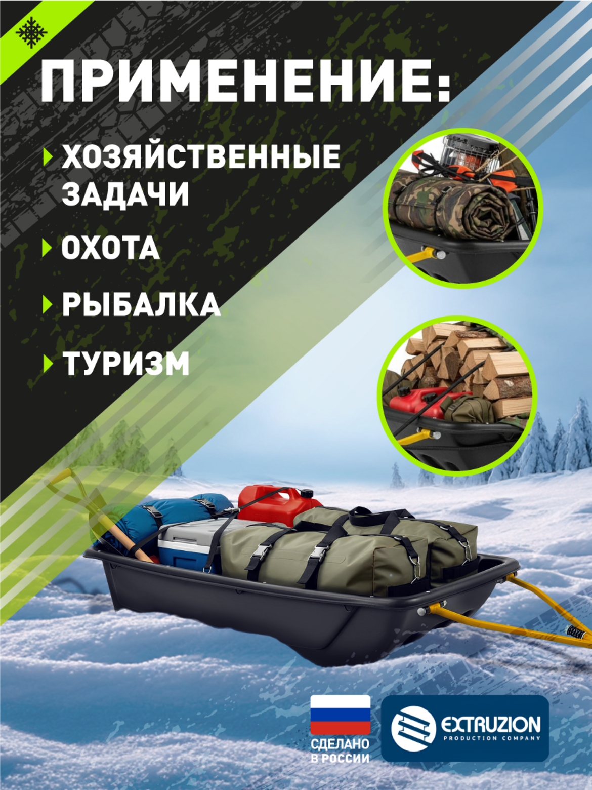 • Мощные сани-прицеп для перевозки крупных грузов по снежной целине. Полностью укомплектованы для немедленного использования с любой буксировочной техникой.