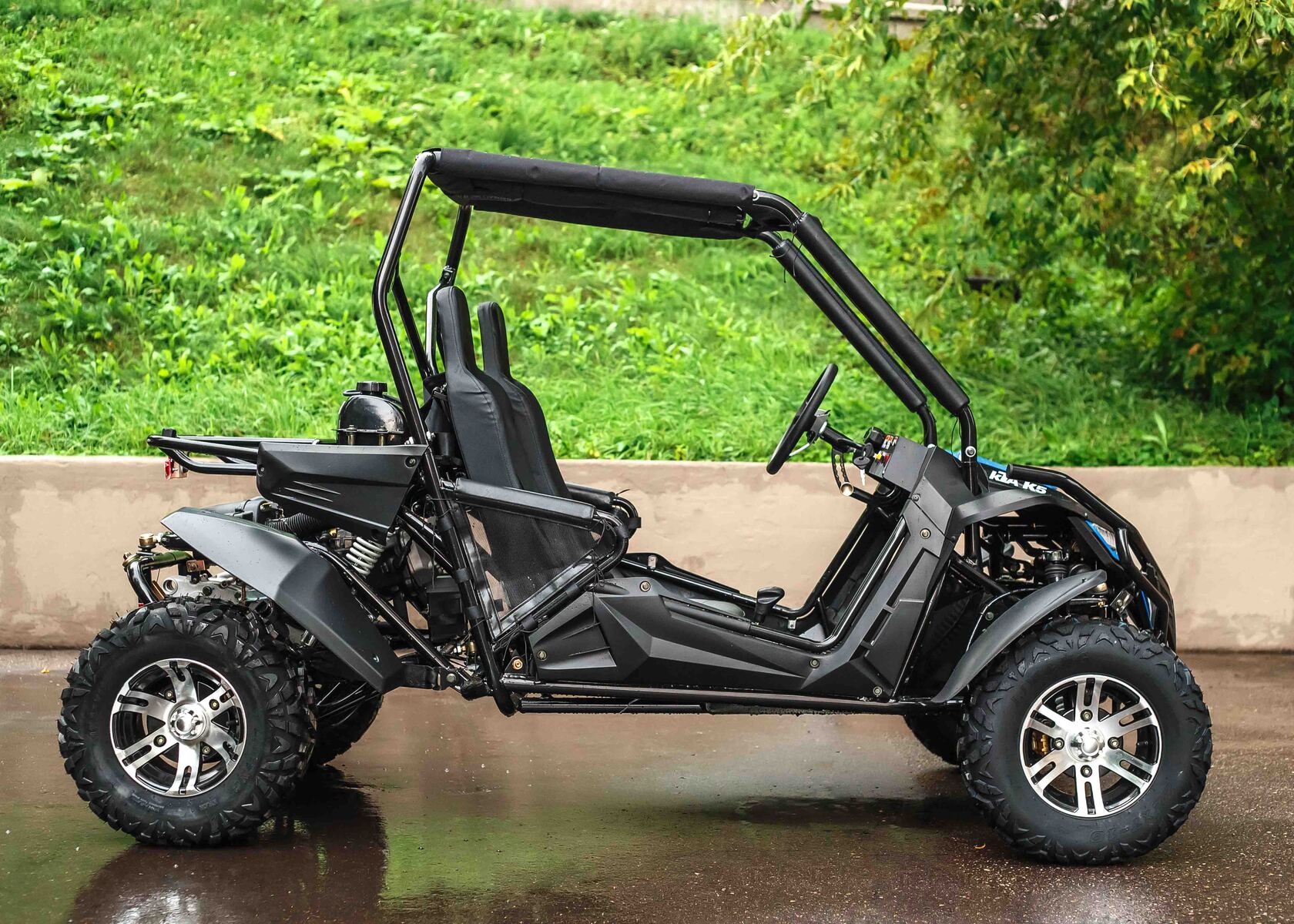 Новинка 2020 года - малокубатурный багги К5! Незабываемый активный отдых обеспечен всей семье.Уникальный, современный дизайн порадует глаз. Малый вес, габариты и фантастическая управляемость даст больше возможностей для динамичных прохватов по сухому грунту. Дорожный просвет 26см и колеса 10 радиуса позволят проверить себя и технику на бездорожье. Ватерлиния на уровне 30см открывает дорогу к водным преградам. А настраиваемая подвеска и шарнирное крепление подрамника сделает ваш отдых еще более приятным, даже если вы отправитесь в многочасовое путешествие.Усиленный каркас обеспечит большую безопасность, дополнительная защита ног лучше защитит от грязи, тканевая крыша даже в базовой комплектации сохранит голову в чистоте. В минибагги с двигателем 180 куб.см будет комфортно и детям от 10-12 лет и взрослым. Комфортно расположиться в багги может человек с ростом до 195 см.Особенности комплектации: