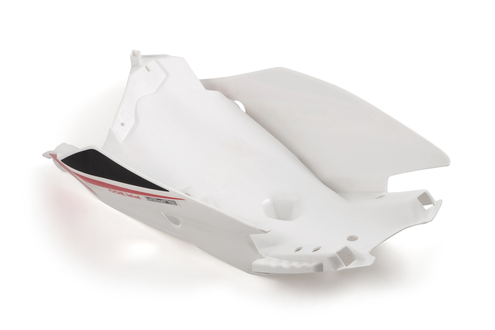 Комплект задней части хвоста (левая и правая сторона) пластика под стиль KTM SX85. Детали изготовлены из прочного и легкого ABS-пластика, идеально повторяют оригинальную форму, легко устанавливаются и обеспечивают надёжную защиту. Комплект выполнен в белом цвете и дополнен наклейками.