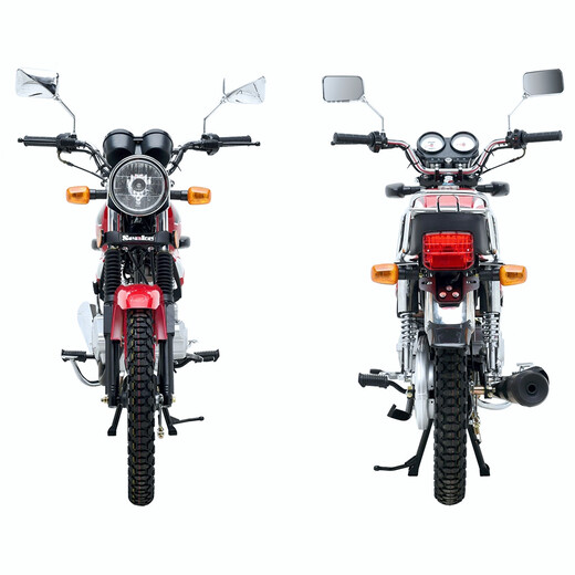 Комплектация Мотоцикл комплектуется всем необходимым оборудованием для комфортной и безопасной эксплуатации на городских и проселочных дорогах: приборная панель, зеркала, световое оборудование, электростартер (двигатель также можно завести при помощи кик-стартера), защитный кожух цепи, складные подножки пассажира и крепкий багажник. Тормоза барабанные.