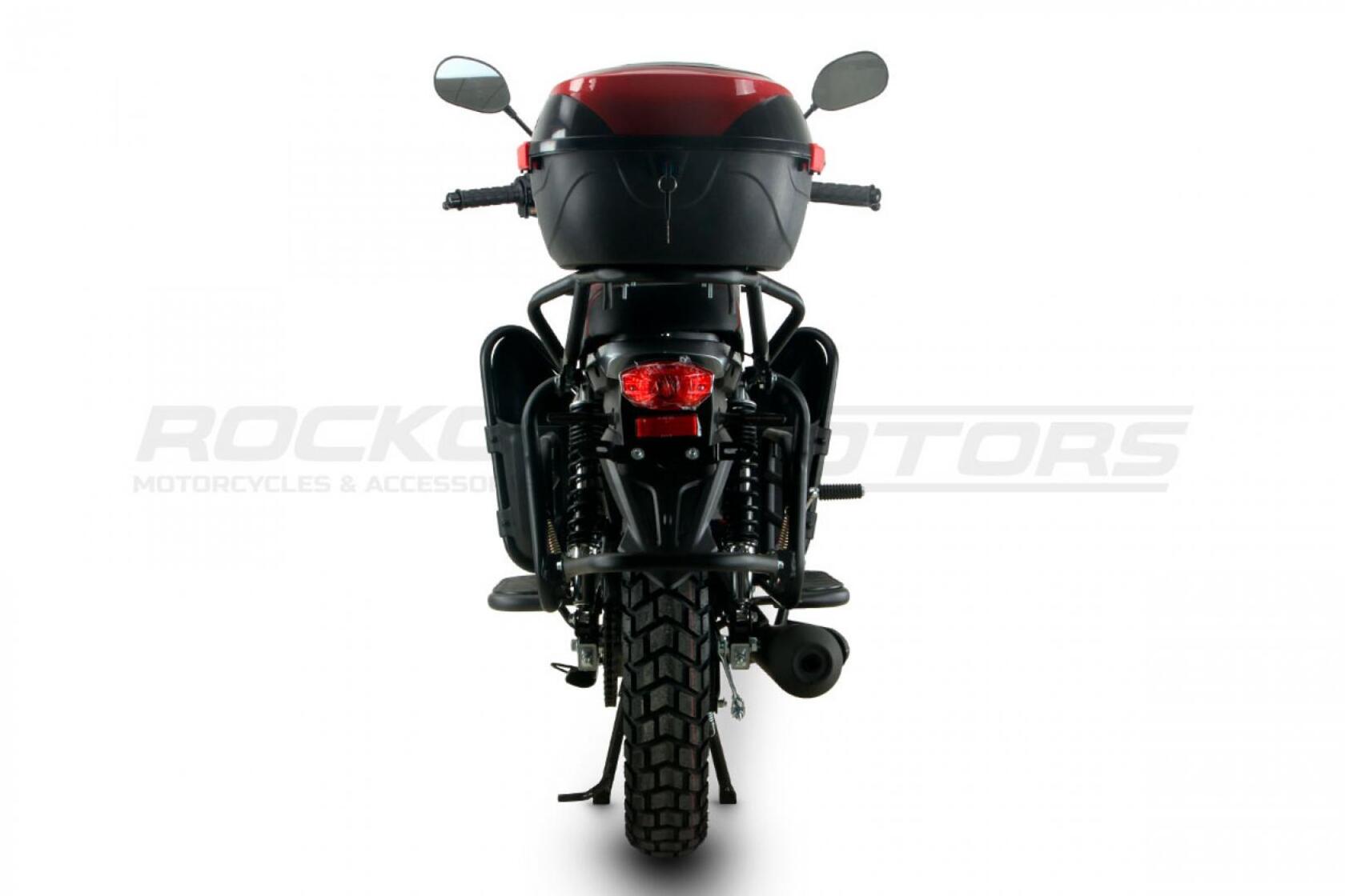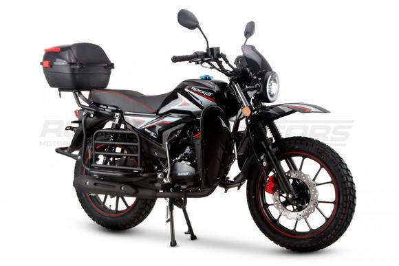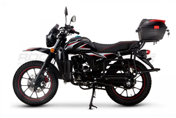 ROCKOT QUEST 150 - новый, дорожный мотоцикл от компании ROCKOT-MOTORS, с большим потенциалом на длительные поездки, независимо от типа дорожного покрытия. Благодаря своим компактным размерам, короткой колесной базе, мотоцикл отлично чувствует себя в городской среде с большим объемом дорожного трафика. Максимальная скорость ROCKOT QUEST 150 - до 92 км/ч на стандартных приводных звездах. Масса мотоцикла -126 килограмм, но при небольшой высоте по седлу в 820 мм и низкому центру тяжести, он ощущается достаточно легким.Мотоцикл имеет ЭПТС, оснащен цветной электронной панелью приборов, зеркалами, всей необходимой светотехникой, что позволяет законно передвигаться по дорогам общего пользования. ДизайнМотоцикл построен в классическом исполнении, но имеет множество современных, технологичных решений.Все световые приборы - светодиодные и очень яркие. Передняя фара имеет круглую классическую форму, но стоит ее включить, как мотоцикл обретает совершенно другой вид.Цветовая гамма модели имеет три варианта окраски: бело-красный, черный и серый.Конечно же, бросается в глаза оснащение мотоцикла туристической багажной системой. На заднем багажнике установлен жесткий центральный кофр. Откидные боковые багажники, позволяют перевозить объемный груз, а также устанавливать боковые багажные сумки. Глядя на мотоцикл, складывается впечатление, что все его пространство использовано максимально практично. Даже в дугах безопасности встроены дополнительные багажные карманы.Топливная системаВ основе топливной системы ROCKOT QUEST 150 - большой топливный бак объемом 12 литров. В зависимости от условий эксплуатации и стиля езды, расход топлива варьируется в районе 3-3,5 литров на 100 километров. Это позволяет преодолевать большие расстояния на одном баке бензина. Используемый тип топлива - бензин АИ-92. Образует топливную смесь - карбюратор PZ27 с ускорительным насосом. Ускорительный насос исключает момент “провала” при резком открытии дроссельной заслонки.Тормозная системаПо канонам классического мотоциклостроения, ROCKOT QUEST 150 имеет комбинированную тормозную систему. Спереди установлен дисковый гидравлический тормоз, с двухпоршневым суппортом, яркого красного цвета. Задний тормоз - механический, барабанный.Кому подойдет ROCKOT QUEST 150Мотоцикл будет очень полезен новичкам. Его небольшие габаритные размеры, низкий центр тяжести, малая высота по седлу - позволяют быстро освоить технику управления мотоциклом как в условиях города, так и бездорожья. С практичной точки зрения, мотоцикл понравится любителям выезжать на отдых за город. Отличная туристическая подготовка, позволит перевозить все, что Вам может потребоваться во время отдыха.Благодаря заложенной надежности в конструкцию двигателя и мотоцикла - ROCKOT QUEST 150 оценит старшее поколение, для кого требуется простая и надежная техника.