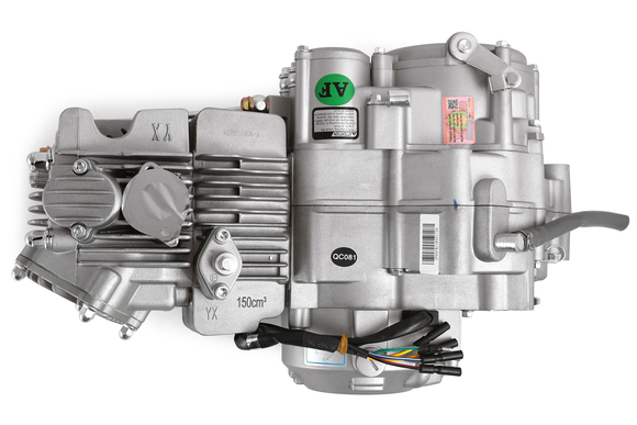 • Двигатель YX150E (1P60FMJ, WD150) с электростартером для питбайков и мопедов типа Альфа. При одинаковом диаметре поршня с YX160 (60 мм), ход коленвала меньше — 53 мм против 57 мм (YX160), что обеспечивает взрывной характер мотора, быстрый набор оборотов и отличную мощность на «верхах». Идеален для скоростных участков, но не рекомендуется для тяжелого бездорожья.