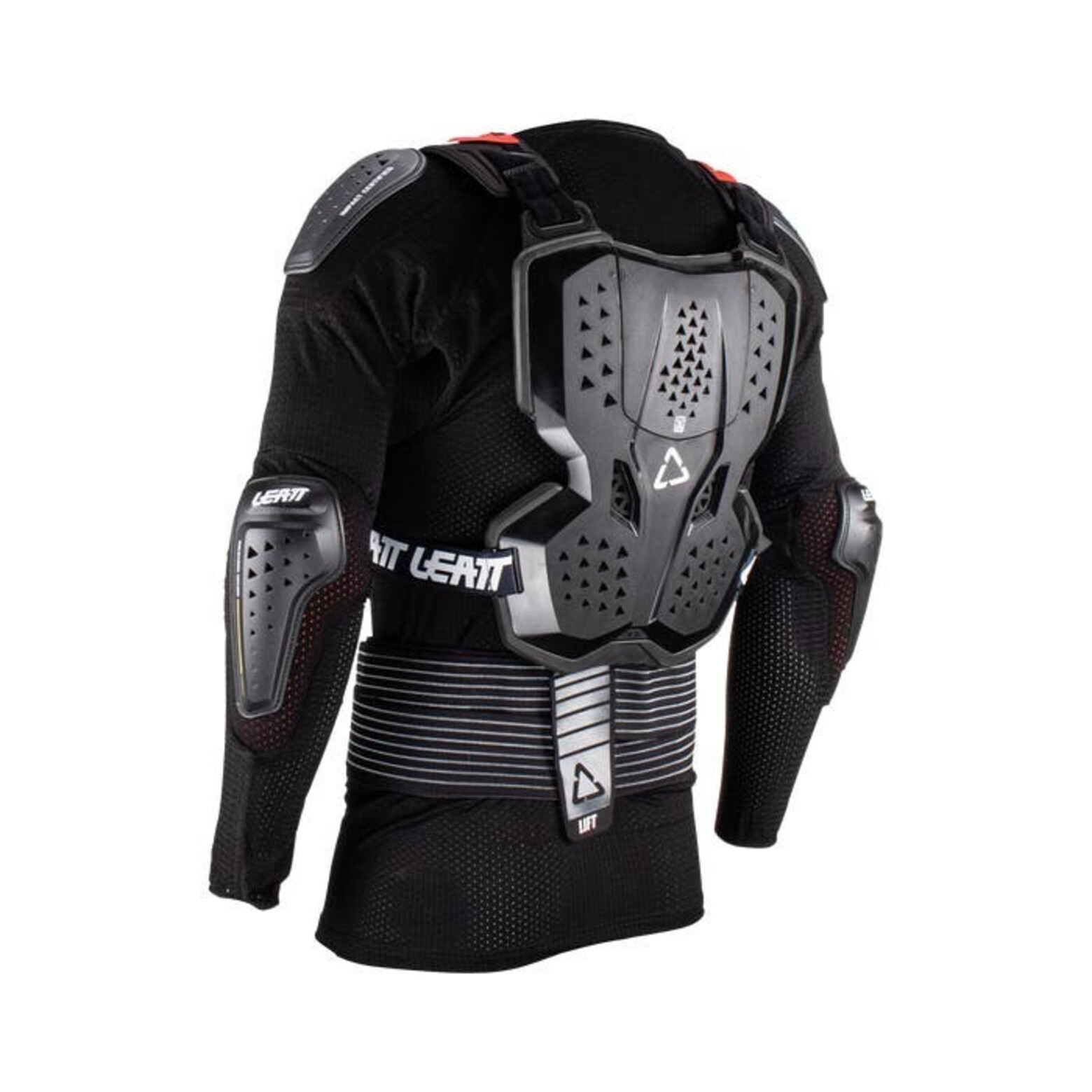 Панцирь Leatt Body Protector 3.5 состоит из двух частей: сначала надевается обтягивающая основа на молнии со встроенной защитой локтей, плеч и компрессионным поясом, а затем жесткий панцирь с защитой груди и спины.Такая модульная система не только обеспечивает хороший уровень защиты, но и прекрасно вентилируется, сохраняя комфортную температуру. Также такой подход облегчает надевание, снятие и мойку экипировки после длинного дня катания. Совместимо с защитой шеи Leatt.