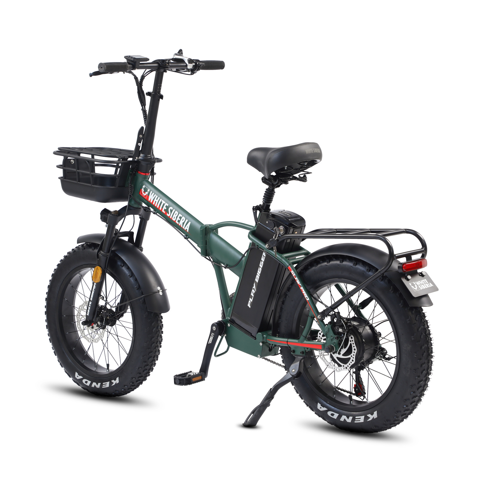 Электровелосипед WHITE SIBERIA SLAV PRO 1000WЭлектрический мини фет-байк - компактный и удобный маленький друг. С ним вы сможете комфортно передвигаться по городу, а в случае необходимости - сложить и уехать в пригород! Он создан для неспешных и комфортных велопрогулок по дорогам российских городов и пригорода!Чем же SLAV PRO так хорош?Мощный электромотор на 1000W отлично помогает на подъёмах в горку и экономит ваши силы во время дальних поездок! Он позволит вам взглянуть по-новому на покатушки - даёт насладиться дорогой и красотами города и парков!Усиленная рама из авиационного алюминия с легкосъёмной батареей на 48V 13A. Окрашена порошковой краской - надёжно защищена и красиво выглядит, благодаря 3 вариантам расцветки.Лёгкая, но прочная - велосипед в сборе весит всего 30 кг! Складная конструкция позволяет легко перевезти фет-байк в багажнике автомобиля или в общественном транспорте. Даже педали складываются! Так что во время хранения он занимает очень мало места.Колёса на 20 дюймов и шириной 4.0 - отличное соотношение манёвренности и проходимости! А благодаря резине Kenda с универсальным рисунком протектора - ещё и отличное сцепление с различными типами дорожных покрытий. Широкая резина лучше преодолевает различные препятствия - бордюры, корни деревьев, камни. В сочетании с регулируемой амортизационной вилкой - получается универсальный, устойчивый фет-байк.Металлические крылья на переднем и заднем колёсах полностью закрывают водителя от грязи, камней и брызг из-под колёс! Ведь широкая толстая резина с камерами даёт возможность ехать там, где другие идут пешком!Качественное навесное оборудование от фирмы SHIMANO, большой дисплей бортового компьютера с подсветкой, удобный лепесток газа, усиленный металлический багажник, передняя корзинка - всё это для вашего комфортного передвижения на мягком сидении электровелосипеда SLAV PRO 1000W.Дисковые механические тормоза спереди и сзади - просты и надёжны. А благодаря наличию подножке, ваш мини фет-байк может опереться и подождать, пока вы наслаждаетесь чашечкой ароматного кофе!Электровелосипед SLAV PRO - для ценителей компактных размеров, но огромных возможностей! Отдыхайте с удовольствием!
