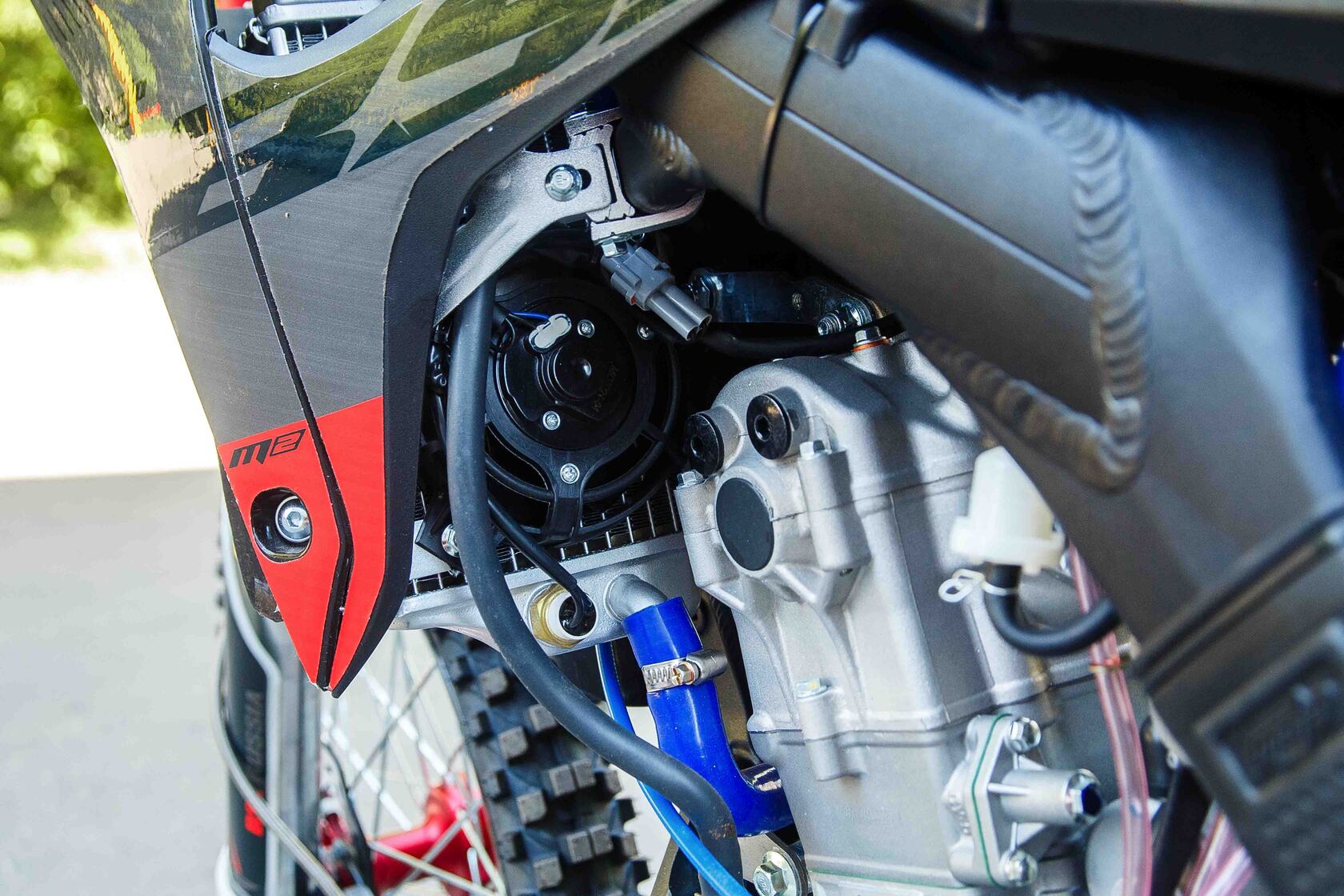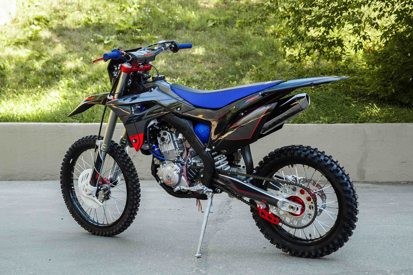 Рама алюминиевая сваренная роботизированным способом, поэтому швы и проварка не вызывает нареканий, геометрия и профиль сварных элементов являются копией рамы Honda crf 250. В базе установлена защита картера.Шасси: Вилка перевернутого типа с регулировкой отбоя, сзади алюминиевый маятник связанный с задним амортизатором через систему линков (pro-link), амортизатор рюкзачного типа длиной 480 мм, с регулировками отбоя, сжатия и пред нагрузкой. Двигатель ZS177MM 250 см3, 4 клапанный, водяного охлаждения, мощностью 27 л.с. производства компании Zongshen с электро и кик стартером.Траверсы, ступицы, звезда, анодированы в красный. Передний и задний диск имеет пластиковую защиту.У нас Вы можете купить этот мотоцикл с бесплатной доставкой по РФ и гарантией до года. Также его можно приобрести в рассрочку или в кредит.
