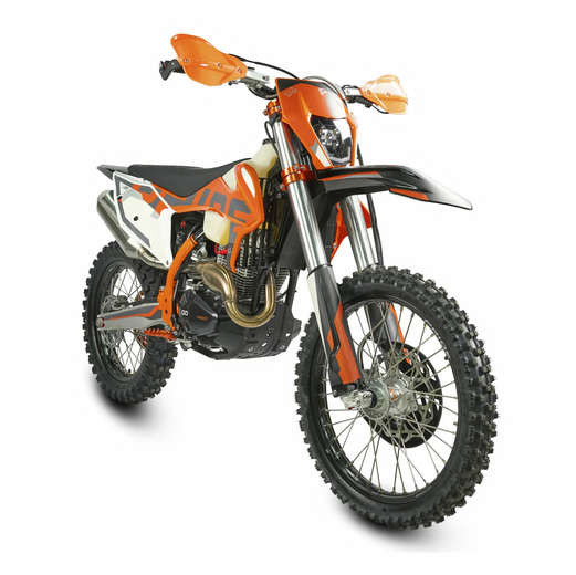 КомплектацияЭлектронная приборная панель, противоскользящее сиденье, защита рамы от протирания ботинками, подножки «AJ1» (алюминий 6063 с шипами), подножка боковая «AJ1» (алюминий 7075-Т6), невозгораемый воздушный фильтр «AJ1» – Twin Air с увеличенной площадью, ведомая звезда «AJ1» (520, алюминий 7075-Т6), защита рук, грипсы OTOM/Lock-On, передние и задние буксаторы «AJ1», откидные алюминиевые рычаги 270, алюминиевая лапка КПП, пульт света КТМ, LED фара 5 линз, моточасы, фрезерованная траверса X trigДвигательМодель оснащена надежнейшим 1-цилиндровым 4-х тактным двигателем ZONGSHEN 175FMN с воздушным охлаждением объёмом 271,4 см3, который выдаёт 25 л.с.ПодвескаПередняя вилка "MNT" перевернутого типа T7 48- 910mm с регулировкой на сжатия и отбой. Моноамортизатор "MNT" также с регулировками. Система прогрессии, обеспечивает равномерную, мягкую работу и увеличивает длину рабочего хода подвески. Также ось крепления маятника совпадает с осью крепления ножки. Это существенно улучшает развесовку мотоцикла.КолесаСпереди и сзади установлены антибуксаторы бренда "AJ1", которые притягивают покрышку к ободу, позволяя ездить по бездорожью при низком давлении в камерах, не давая покрышке проворачиваться во время езды. Размер передней покрышки: 80/100 R21. Размер задней покрышки: 120/90-R18. Модель комплектуется "жирной" резиной "KENDA". Все эти характеристики позволяют мотоциклу отлично себя чувствовать в песке и грязи.Тормозная системаПолностью гидравлическая с армированными шлангами. Спереди и сзади установлен двухпоршневой суппорт. Данная конфигурация тормозных механизмов, позволяет быстро и безопасно оттормаживаться даже в самых непростых условиях.Сухой вес мотоцикла 115кг