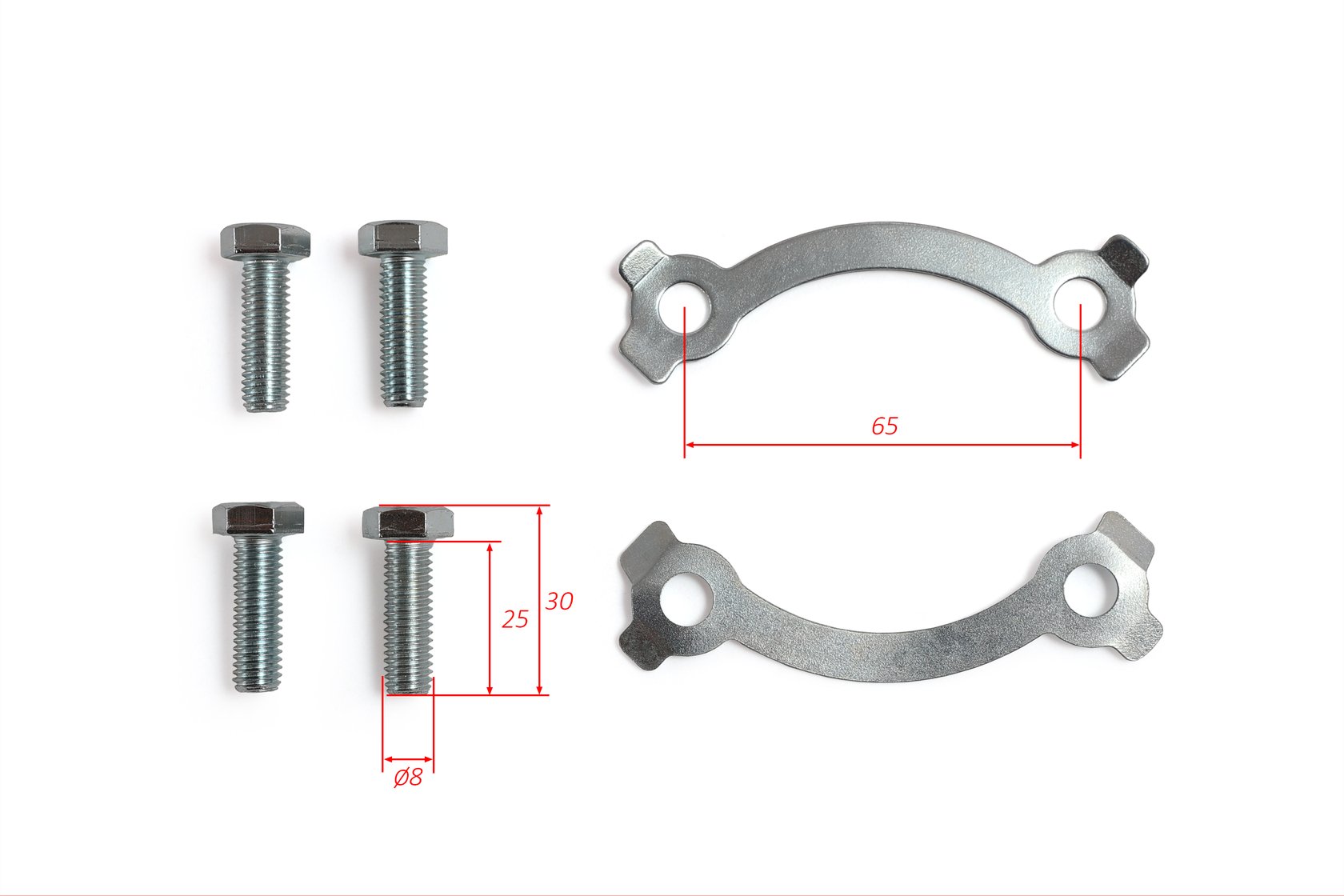 • Болты с метрической резьбой M8, длиной 25 мм — оптимальны для большинства питбайков и лёгких мотоциклов