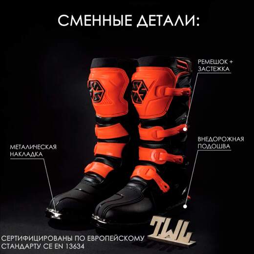 Scoyco MBM006: Полный контроль на бездорожьеМотоботы Scoyco MBM006 — созданы для тех, кто бросает вызов самым экстремальным трассам. Это ваш надежный союзник в мире мотокросса, эндуро и триала, обеспечивающий максимальную защиту, выносливость и комфорт.Ключевые преимущества:Превосходная защита: Усиленный пластиковый панцирь защищает голень, лодыжку и пятку. Регулируемый замок на щиколотке обеспечивает идеальную посадку.• Прочность и износостойкость: Комбинация кожзама и нейлона выдерживает экстремальные нагрузки. Усиленные зоны в критических точках продлевают срок службы.• Агрессивное сцепление: Шипастая резиновая подошва обеспечивает полный контроль над мотоциклом в любых условиях.• Комфорт и вентиляция: Дышащая подкладка и вентиляционные каналы эффективно отводят влагу и тепло.• Надежная фиксация: Две металлические пряжки и широкая липучка для быстрого и точного подгона.Технические характеристики:Бренд: ScoycoМодель: MBM006Назначение: Мотокросс, Эндуро, ТриалМатериал верха: Искусственная кожа, нейлон, текстильные вставкиЗащита: Носок, пятка, щиколотка (регулируемый замок), голеньПодкладка: Дышащая сетка, съёмная антибактериальная стелькаПодошва: Резиновая, масло- и бензостойкая, гибкаяЗастежка: 2 металлические пряжки + липучкаРазмеры: 39-48 (уточняйте наличие)Для кого:Профессиональные кроссмены и любители эндуро, которые ценят безопасность, контроль и результат на трассе.