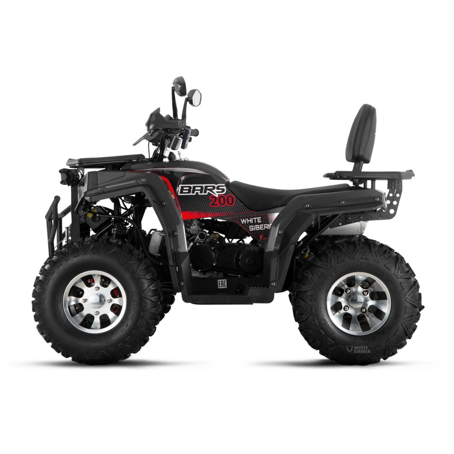 WHITE SIBERIA BARS 200CC PROНовый Бензиновый квадроцикл WHITE SIBERIA BARS 200CC PRO — выход на совершенно новый уровень качественной бензиновой техники.Бензиновый квадроцикл WHITE SIBERIA BARS 200CC PRO для подростков и взрослых.Оборудован четырехтактным двигателем с балансировочным валом, 200 кубов 17 л.с.Развивает скорость до 60 км/ч.Трансмиссия вариатор F-N-R.Новый Бензиновый квадроцикл WHITE SIBERIA BARS 200CC PRO- имеет богатое оснащение, в комплектацию PRO включены литые диски, лебедка, фаркоп, дополнительное освещение, подогрев ручек, защита рук, USB разъем, спинка для пассажиров, поворотники и зеркала заднего вида, спидометр, датчик уровня топлива.Бензиновый квадроцикл WHITE SIBERIA BARS 200CC PRO-это полноценный квадроцикл от WHITE SIBERIA со всеми необходимыми функциями для активного отдыха на природе в любое время года и при любой погоде.
