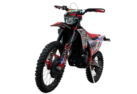 В сердце лежит двигатель проекта CB300F – ZS175FMM на 300 куб.см. с мощностью 24,5л.с., в паре с карбюратором NIBBI RACING BLACK PE-30 SPORT-SERIES для исключения провалов и гарантии правильной подачи смеси в нужном объеме!5-ступенчатая КПП со сцеплением ProLine легкого выжима!Все это установлено на раму KTM 2024 – идеальная развесовка, малый вес и огромный запас прочности, благодаря Хромолибденовой стали! Защитой от коррозии является покрытие RAPTOR! Нет ржавчины и царапин!За устойчивость и маневренность отвечает австрийская WP Suspension, полностью настраиваема под ваши задачи и стиль езды!Прямоточная стальная трасса выхлопа с глушителем на базе разработок именитого бренда AKRAPOVICH с системой POWERBOMB.Головной свет, оснащенный 5 светодиодными линзами и габарит, совмещенный со стоп сигналом позволят безопасно кататься в любое время суток.Легкосплавные, алюминево-кремневые, колесные диски UNISON, фрезерованные алюминиевые ступицы CNChub – наилучший баланс прочности и веса! Резина KENDA/Cordial подходит как летнего эдуро, так и для зимнего дерби т.к. с легкостью выдерживает вкручивание шипов. Композитные буксаторы плотно фиксируют покрышку не позволяя ей прокручиваться.Тормозная система ANJIE (from BREMBO) выбор настоящих профессионалов! Правильная геометрия суппорта зажимает диск, а не старается его «перекусить»! Тормозные диски KTM – вентилируемые, большого диаметра для уверенной остановки и достаточного рассеивания тепла, которые не поведут! Все это дело закрывает кожух PRO CAKEN!Система подачи топлива NIBBI RACING BLACK PE-30 SPORT-SERIESВыхлопная система из алюминия AKRAPOVIC с POWERBOMBУсиленная цепь RK520 CHOHO TOP-SERIESLED-фара и задний габаритВстроенный спидометр и USB-портПрофессиональное антискользящее сидение ACERBISРуль RENTHAL FATBAR 7075 из анодированного алюминияЗащита рук NIBBI RacingСиликоновые грипсы NIBBI Racing LockOnКурки неломайки фрезерованные, алюминиевые от CNCПластиковая защита цепи PRO CAKENЗащита руля Acerbis