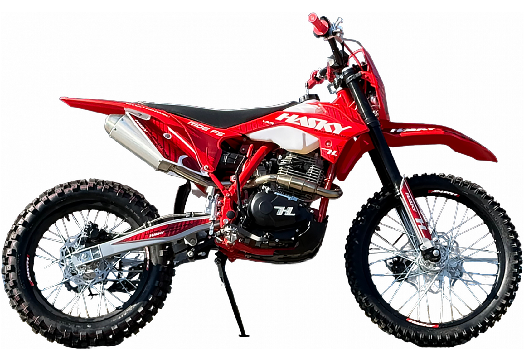 Hasky F5 Ride New представляет собой самую доступную модель в линейке бренда, отличаясь от старшей F5 PRO 2025 комплектацией, но сохраняя при этом надежность и качество, присущие семейству Hasky. Этот среднеразмерный эндуро-мотоцикл на колесах 21"/18" построен на прочной раме K5.В основе модели лежит надежный двигатель ZS172FMM, оснащенный балансировочным валом для снижения вибраций, пятиступенчатой коробкой передач и комбинированной системой запуска (электростартер + кик-стартер). Подачу топлива обеспечивает производительный карбюратор Nibbi PE 28. Управляемость и комфорт на бездорожье обеспечивают передняя регулируемая вилка MTN диаметром 43 мм и задний моноамортизатор с прогрессией.Мотоцикл комплектуется передним колесом 21" с покрышкой 80/100-21 и задним 18" с покрышкой 110/100-18, оснащенными фиксаторами. Эргономика управления улучшена за счет новых пультов в стиле KTM, ручки газа Nibbi и грипсы lock-on. Защита двигателя, рамы и перьев повышает долговечность. Дополнительные удобства включают мощную галогеновую фару и счетчик моточасов.Особое внимание уделено безопасности и надежности: воздушный фильтр увеличенной площади изготовлен из негорючего материала, а вся проводка мотоцикла полностью влагозащищенная. Новая усиленная графика придает модели стильный вид. Hasky F5 Ride New предлагает отличное сочетание цены, надежности и оснащения для начинающих и опытных райдеров.