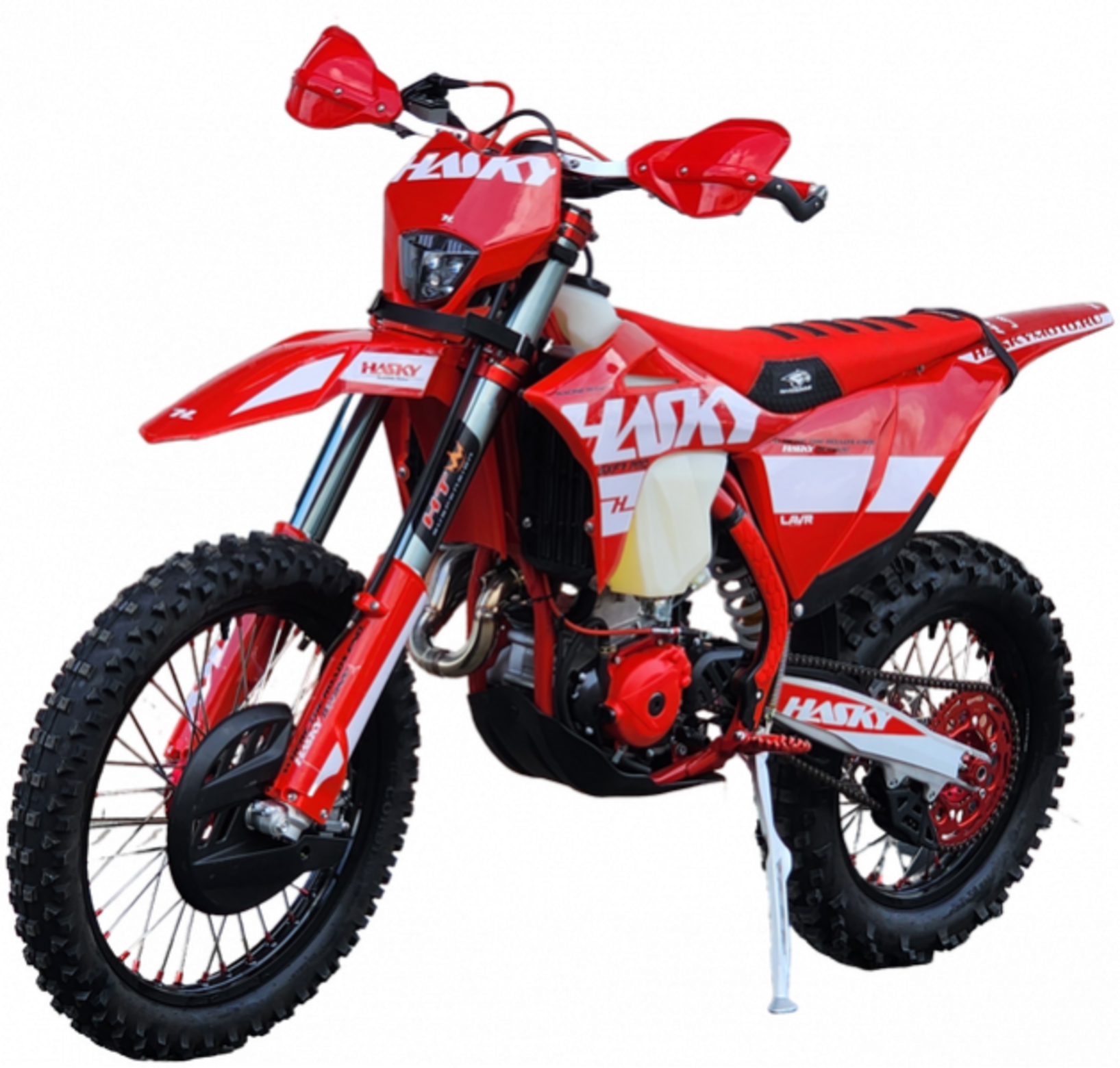 Hasky F7 PRO 177MM 2025 – обновленная классика эндуро с премиальными характеристикамиЭтот полноразмерный мотоцикл на колесах 21/18 дюймов представляет собой современную интерпретацию классического эндуро, сочетающую проверенные решения и инновационные технологии. В основе модели лежит мощный двигатель ZS 177MM NC298 с балансирным валом, развивающий 31 л.с. и оснащенный 5-ступенчатой коробкой передач. Двойная система запуска (кик-стартер и электростартер) обеспечивает надежность в любых условиях, а карбюратор Nibbi PWK 34 Black гарантирует стабильную работу силового агрегата.Подвеска HTW T9 с 48-миллиметровыми вилками закрытого картриджа (со всеми регулировками) и алюминиевым маятником обеспечивает превосходную управляемость на сложных трассах. Траверсы CNC AJ1 двойного охвата и 360-градусная защита перьев вилки демонстрируют продуманность конструкции.Тормозная система AJ1 (аналог Brembo) в сочетании с алюминиевыми ободами KKE, фрезерованными ступицами и подшипниками NSK обеспечивает уверенное торможение. Эргономика продумана до мелочей: усиленный руль из сплава 7075, грипсы AJ1 Lock On, антискользящее сиденье, пульты KTM и широкие подножки AJ1 создают комфортные условия для райдера.Комплексная защита включает элементы OTOM для двигателя, радиатора, рамы и тормозного диска, дополненные буксировочными стропами. Колеса с покрышками Cordial (18" заднее, 21" переднее) оснащены 3-миллиметровыми камерами и фиксаторами AJ1.Дополнительные преимущества: негорючий воздушный фильтр увеличенной площади, полностью влагозащищенная проводка, светодиодная фара с 4 линзами и комплект инструментов.