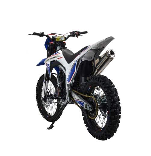 Мотоцикл Motoland 300 MTX300 (175FMM)Идеален для езды по бездорожью, т. к. имеет отличную проходимость на песке и мягком грунте.Обновленный двигатель 175FMM, мощностью 25 л. с. Позволяет выжать из мотоцикла максимум, обеспечивая хорошую динамику разгона и высокую максимальную скорость.Коробка передач механическая, пятиступенчатая. Карбюратор NAKAI оснащен резиновым патрубком, что обеспечивает снижение вибрации.Передняя подвеска (вилка GPX) телескопическая не регулируемая перевёрнутого типа.Задняя подвеска с прогрессией, с моноамортизатором, который имеет регулировку - преднатяг пружины.Рама мотоцикла полудуплексная, стальная.Сиденье кроссовое, с противоскользящим покрытием.Обода колес стальные спицованные, с алюминиевыми окрашенными литыми ступицами.Покрышки 80/100 21” и 110/100 18” с мощными грунтозацепами, обеспечивающими превосходное сцепление с грунтом и позволяющими контролировать управляемость на нестабильных поверхностях кроссовых трасс.Передние и задние тормоза дисковые, с надёжными двухпоршневыми и однопоршневыми суппортами спереди и сзади.Подножки пассажира.Руль переменного сечения с алюминиевыми литыми траверсами, выдерживает значительные нагрузки, в том числе при падениях.Высота по рулю и седлу позволяет чувствовать себя удобно как людям среднего, так и большого роста.Мотоцикл оснащён светодиодной линзованной фарой головного света. Система зажигания электронная (CDI). Запуск двигателя комбинированный, ножным кикстартером и электростартером. Картер с защитным кожухом.