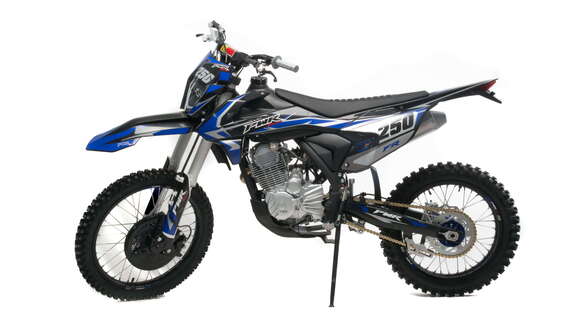 Мотоцикл Motoland PWR FR250 PRO (172FMM) - имеет мощный 4-х тактный двигатель 172FMM-3A 250 см3, на пике выдающий мощность 21 лс.. Это позволит выжать из мотоцикла максимум. На мотоцикле установлен карбюратор NIBBI PE 30 с обогатителем на руле. Улучшенная подвеска GPX Professional series, оснащена настройкой заднего амортизатора и прогрессии. Запуск двигателя производится как электростартером, так и кикстартером.Педаль п/п CNC складная, специально спроектированная для 172-го двигателя. Позволяет легко переключать передачи в любых режимах. Рама и маятник с двухсторонними рёбрами жёсткости.Глушитель с Power Bomb c карбоновой накладкой.На данной модели установлены: усиленная литая траверса, руль 28/22 мм переменного сечения с подушкой, защита рук, регулировка рычагов тормоза, увеличенные крылья, сидение с противоскользящим покрытием, цветная инверсионная панель приборов.