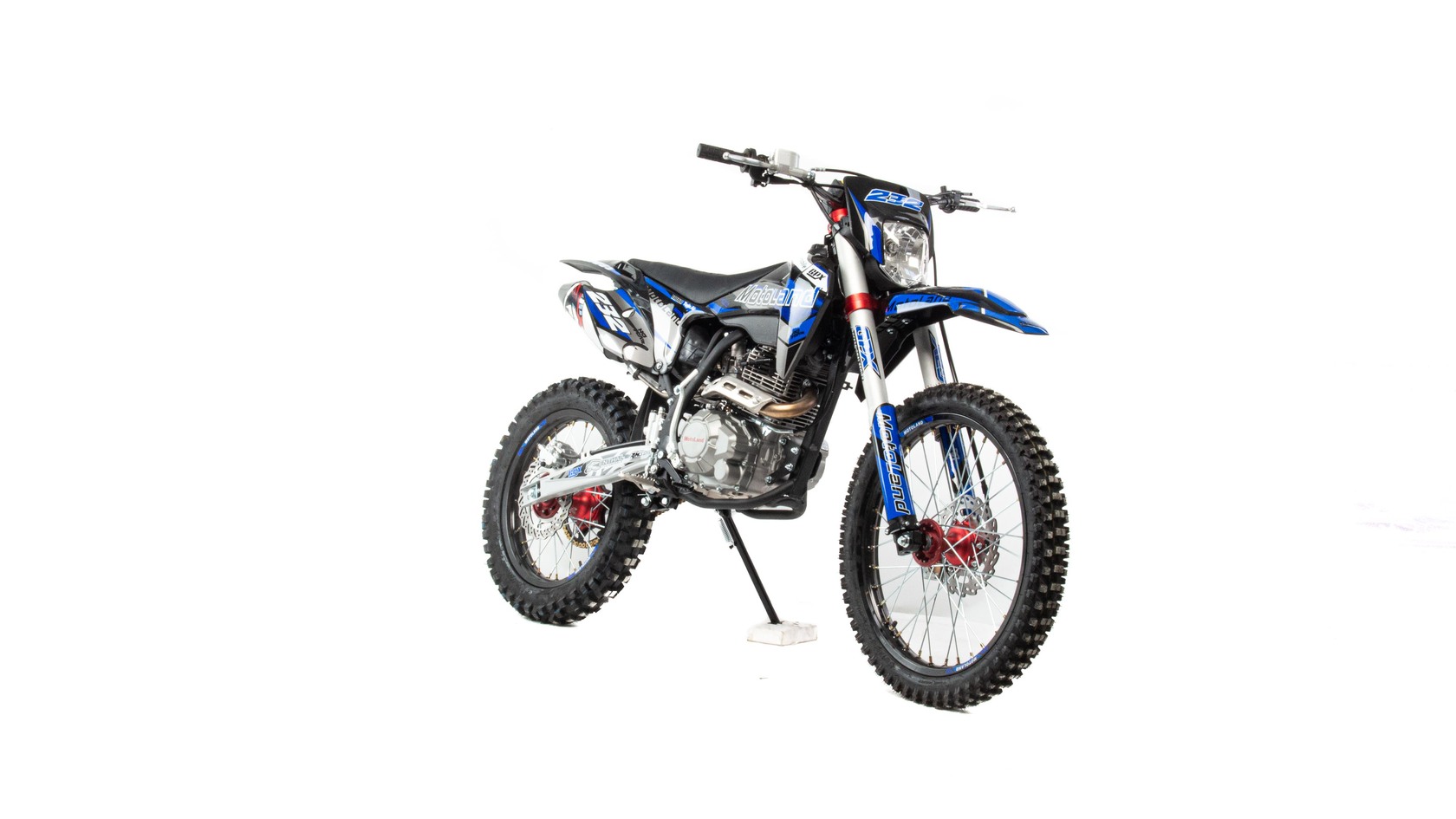 Современный дизайн мотоцикла подчёркивает спортивный характер байка.Установлен мощный 4х клапанный двигатель с воздушным охлаждением ZONGSHEN 172FMM-4VБольшой ход подвесок для комфортного передвижения по пересеченной местности, которые также позволяют ехать быстро и агрессивноВысокий вынос руля которые позволяет комфортно ездить в стойке и полностью контролировать мотоциклМотоцикл больше предназначен для езды по переченной местности полям и лесам, чем для города из за профиля резины.Он маневренный и удобный,сидение с противоскользящим чехлом.При этом он прост в управлении и неприхотлив в обслуживании и подходит мотолюбителям любого возраста,и опыта вождения.Технические характеристикиАнтибуксаторы на переднем и заднем колесе для езды на пониженном давлении или защиты от прокручивания камерыПередняя вилка перевернутого типа GPX без регулировок. Задний амортизатор с регулировкой.Карбюратор NIBBI PE n30Обновленная тормозная система. Передний и задний суппорт 2х поршневой.Герметичная проводкаВысота по седлу 940мм.Вес 125 кг.