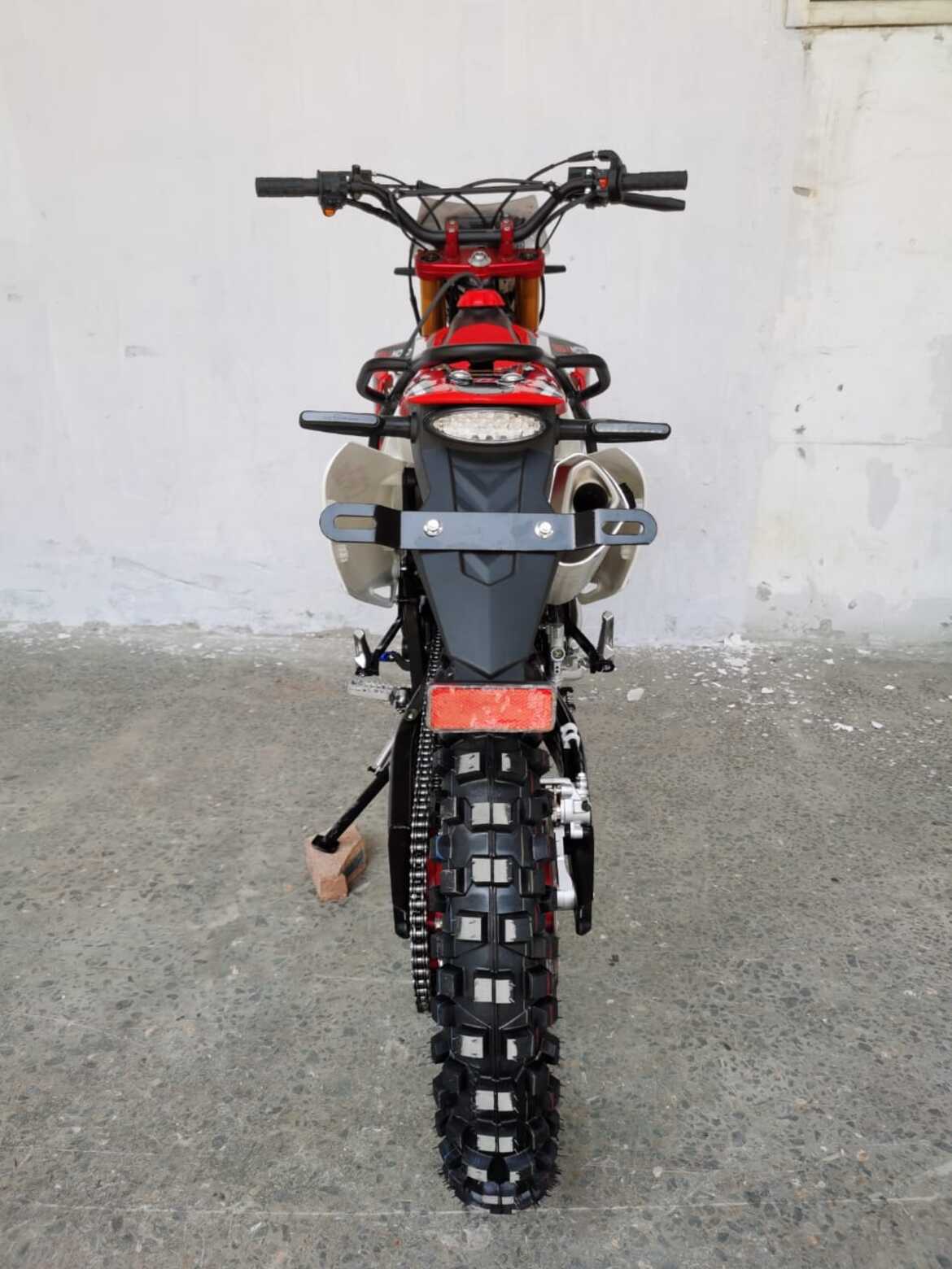 Это полноразмерный кроссовый мотоцикл его база по осям составляет 1430 мм., и габаритами 2180х800х1300 мм. Высота по седлу составляет 940 мм, что позволяет комфортно себя чувствовать райдерам среднего роста.