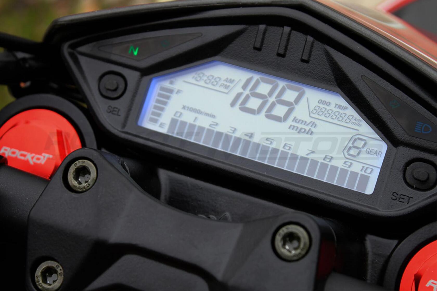 Мотоцикл ROCKOT HOUND 250 - новинка в категории вседорожных мотоциклов. Оборудован двигателем Zongshen 4Т 167FMM, с балансирным валом. Усиленная стальная рама и маятник. Передняя подвеска - вилка перевернутого типа. Удобное посадочное место для водителя и складные ножки для пассажира. Полноценная приборная LED панель с датчиком топлива. Данная модель представлена в ярком, агрессивном дизайне.