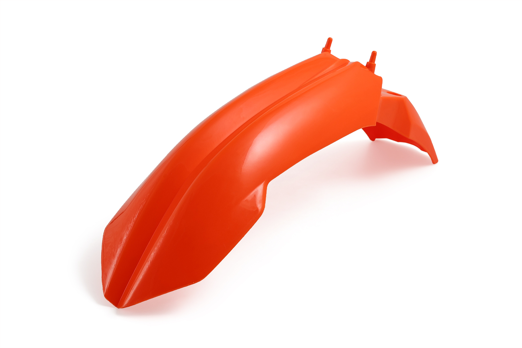 Оранжевое переднее крыло для мотоциклов KTM SX85 2013-2016 года, а также аналогичных китайских моделей на раме K5. Деталь изготовлена из высококачественного ударопрочного пластика по типу KTM SX85 и подходит для интенсивной эксплуатации в условиях эндуро. Полный аналог оригинального крыла KTM с артикулом 4710801000004. Крыло придаёт мотоциклу фирменный стиль KTM и обеспечивает надёжную защиту передней части от грязи и камней. Простая установка на штатные места без доработок.