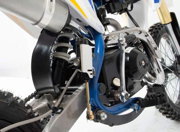 Питбайк Motoland TCX125 14/12 идеален для поездок по грунтовым дорогам и бездорожью. Хорошо чувствует себя на мягком и среднем грунте, разгоняется до 90 км/ч. Оснащён спортивными траверсами, весит всего 70 кг.Питбайк прост в управлении и не требует специального ухода, подойдёт как новичкам, так и любителям мотокросса.Питбайка отличный узнаваемый дизайн. Конструкция подчёркивает неуступчивый спортивный характер, который не остановится ни перед одним препятствием.Комбинированный прочный пластик не ломается при сгибании.Передняя подвеска — телескопическая вилка перевёрнутого типа (с регулировкой по давлению воздуха), которая отлично подходит для преодоления ям, и других неровностей плохих дорог или их отсутствия. Задняя подвеска маятниковая с моноамортизатором. Мотоцикл оснащён одноцилиндровым четырёхтактным двигателем с воздушным охлаждением. Надёжный мотор 152FMI мощностью 8 л. с. и объемом 125 см³ , установленный на усиленной стальной раме, коробка передач полуавтоматическая, четырёхступенчатая.Тормоза дисковые, передний тормозной суппорт двухпоршневой, задний — однопоршневой.Питбайк относится к недорогим моделям, которые при должной эксплуатации работают без сбоев. Не занимает много места в гараже. При необходимости в нём легко сменить любую повреждённую деталь.