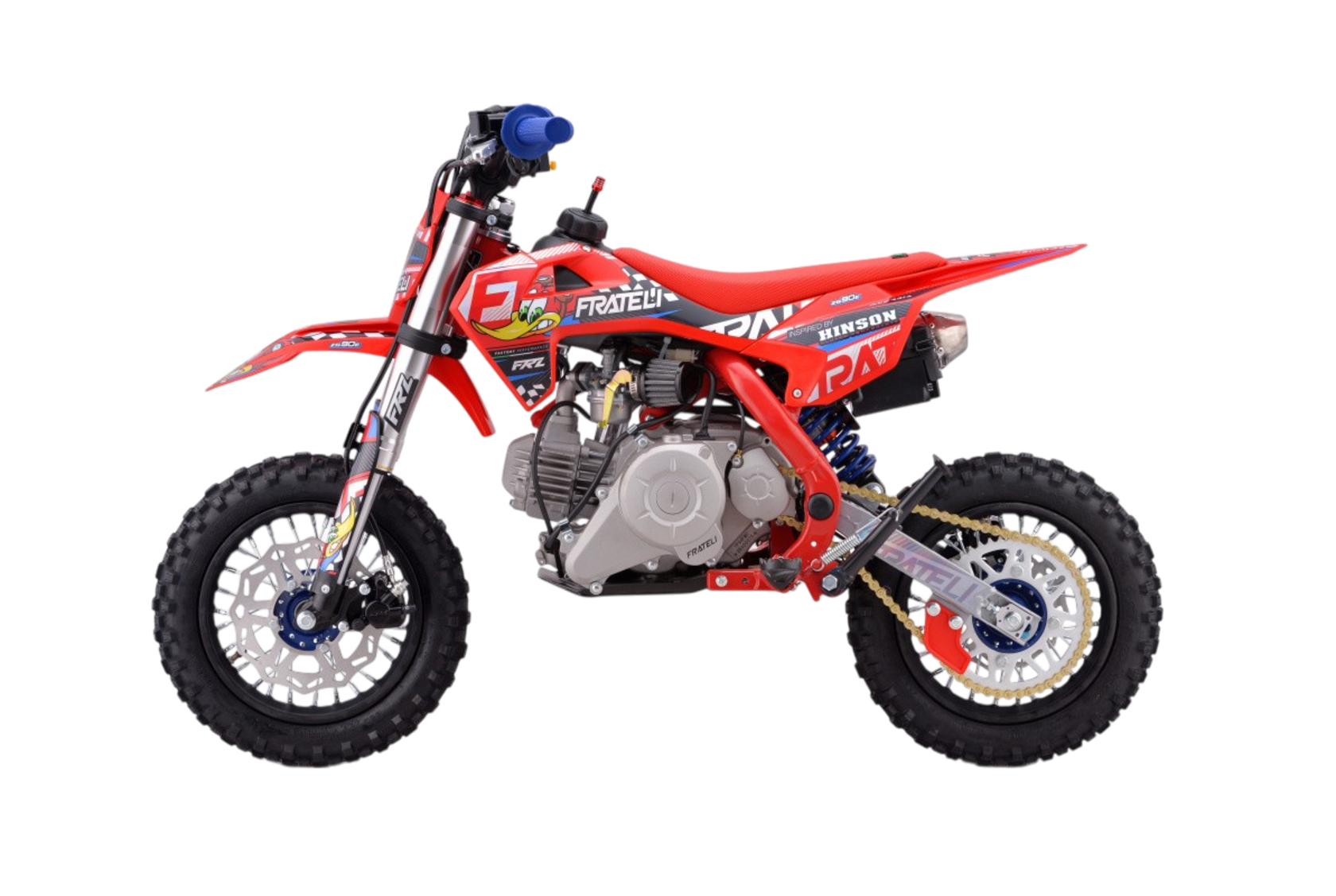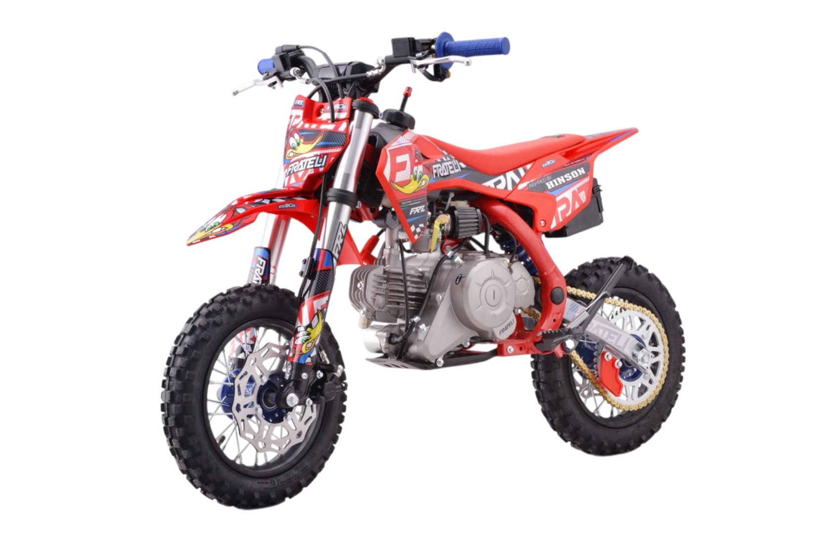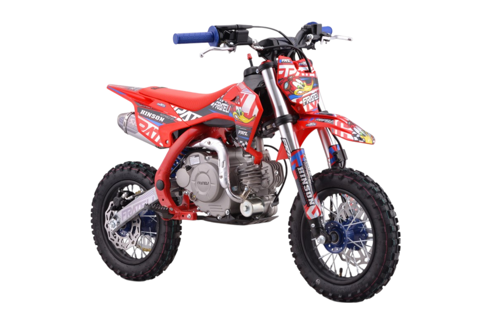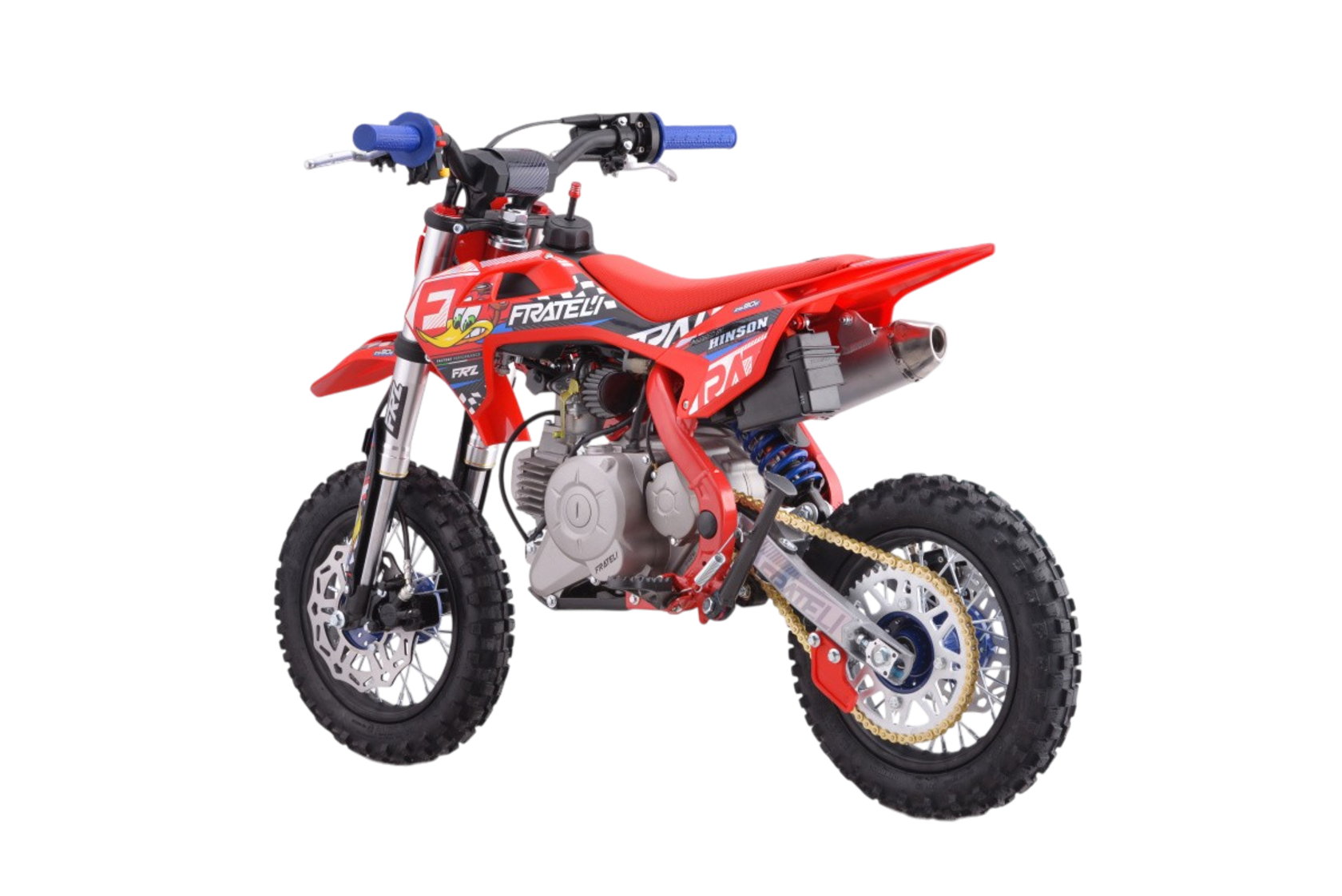 Питбайки FRATELI для тех, кто не ищет компромиссов. Мотоциклы и питбайки FRATELI это эталонное качество в каждой детали.Итальянский бренд FRATELI GLOBAL. Имея длительный опыт сотрудничества с именитым производителем HINSON компания FRATELI создает мотоциклы, где качество заметно в каждой детали. Внимательное отношение к деталям - отличительная особенность производителя FRATELI. Даже техника производимая для Азиатского рынка, на заводе в Китае, производится под четким контролем и в соответствии с высокими требования компании FRATELI GLOBAL!Мотоциклы разработаны именно под специфику центральной части Европы и Азии. Мотоциклы FRATELI GLOBAL - это Европейское качество по очень доступной цене. Мотоциклы компании FRATELI производятся на нескольких заводах находящихся в Испании, США и Китае. На рынок России, мотоциклы поставляются с завода в Китае, что позволяет игнорировать какие-либо санкции и оптимизировать логистические цепочки.Мотоциклы FRATELI это детальный подход к созданию техники для активного вида спорта. Каждая деталь мотоцикла проверена и подобрана оптимально, для идеального соотношения мощности - веса, цены-качества, управления-комфорта.Двигатель:Самый современный и надежный двигатель воздушного охлаждения не позволят вам перегреть двигатель даже в самых жестких условиях эксплуатации. Все двигателя проходят подготовку и настройку специалистами FRATELI GLOBAL.Выхлопная система по технологии Akrapovic Exhaust System и впуском от Lucas являются завершающим аккордом превосходства данной силовой установки.Фрезерованные траверсы CNC: