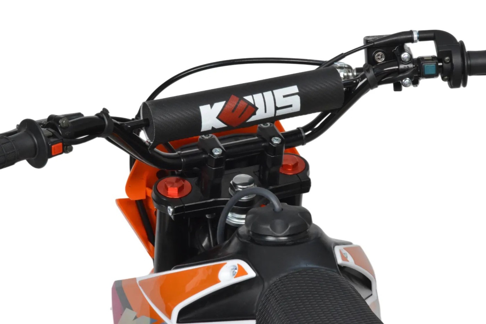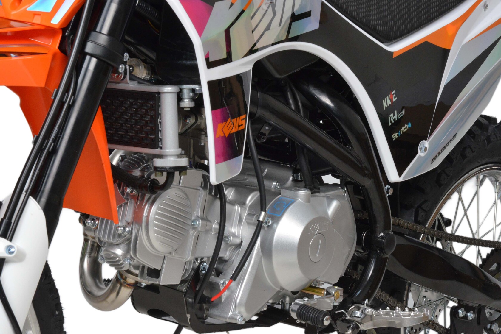 Питбайк Kews K61 140 E 19/16 идеален для поездок по грунтовым дорогам и бездорожью. Хорошо чувствует себя на мягком и среднем грунте, разгоняется до 110 км/ч. Оснащён спортивными траверсами, весит всего 90 кг.Питбайк прост в управлении и не требует специального ухода, подойдёт как новичкам, так и любителям мотокросса.У питбайка отличный узнаваемый дизайн. Конструкция подчёркивает неуступчивый спортивный характер, который не остановится ни перед одним препятствием.Комбинированный прочный пластик не ломается при сгибании.Передняя подвеска — телескопическая вилка перевёрнутого типа (регулировка по давлению), которая отлично подходит для преодоления ям, и других неровностей плохих дорог или их отсутствия. Задняя подвеска маятниковая, моноамортизатор с прогрессией. А так же оснащён складными рычагами сцепления и переднего тормоза.Питбайк оснащён карбюратором NIBBIPE22 и одноцилиндровым четырёхтактным двигателем с воздушно-масляным охлаждением. Надёжный мотор 1P56FMJ мощностью 11 л. с. и объемом 140 см3