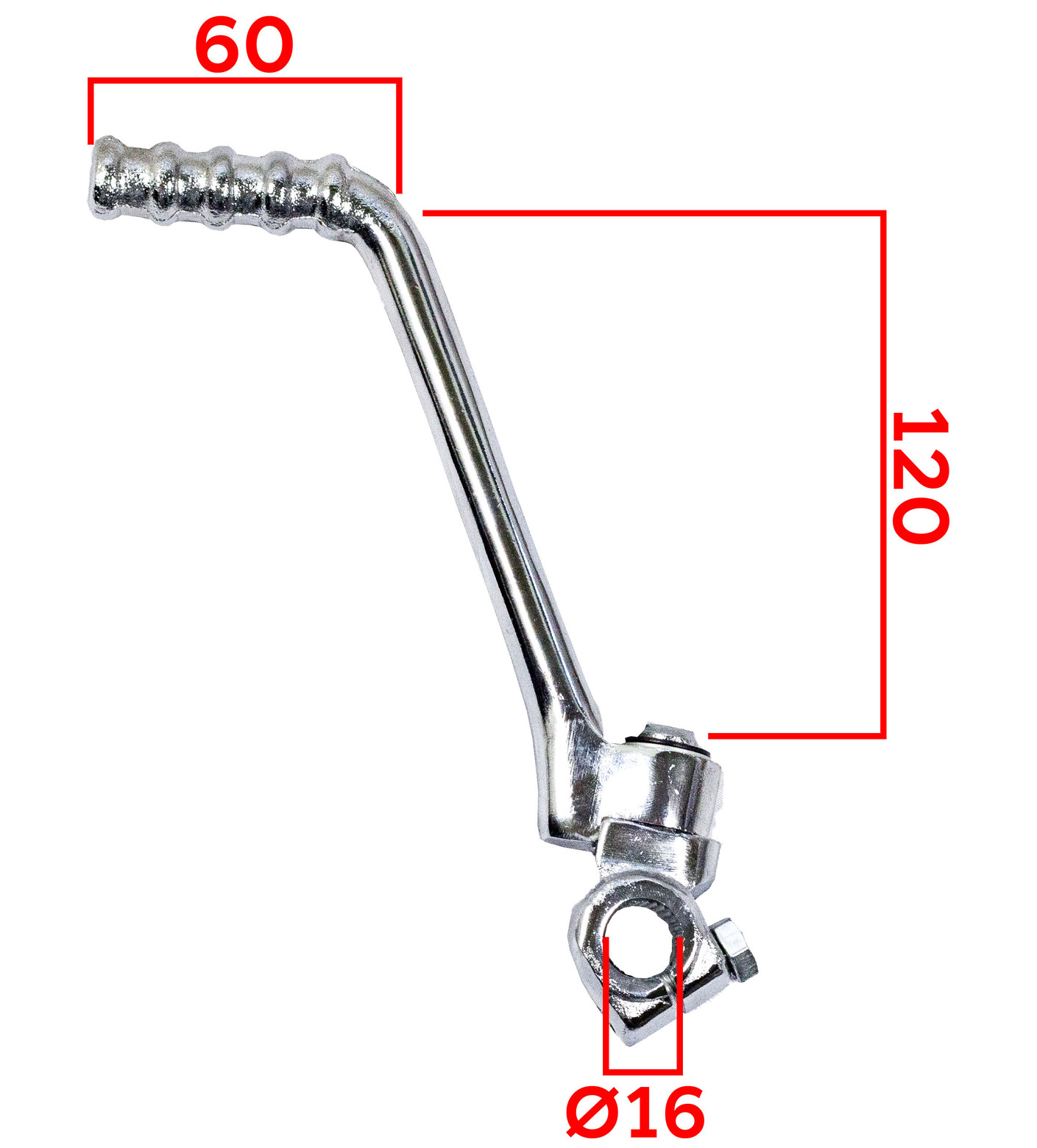 Рычаг кикстартера из стали для питбайков с посадочным диаметром 16мм. Предназначен для горизонтальных двигателей 140-190сс. Обеспечивает надежный запуск двигателя, устойчив к механическим нагрузкам и деформации.
