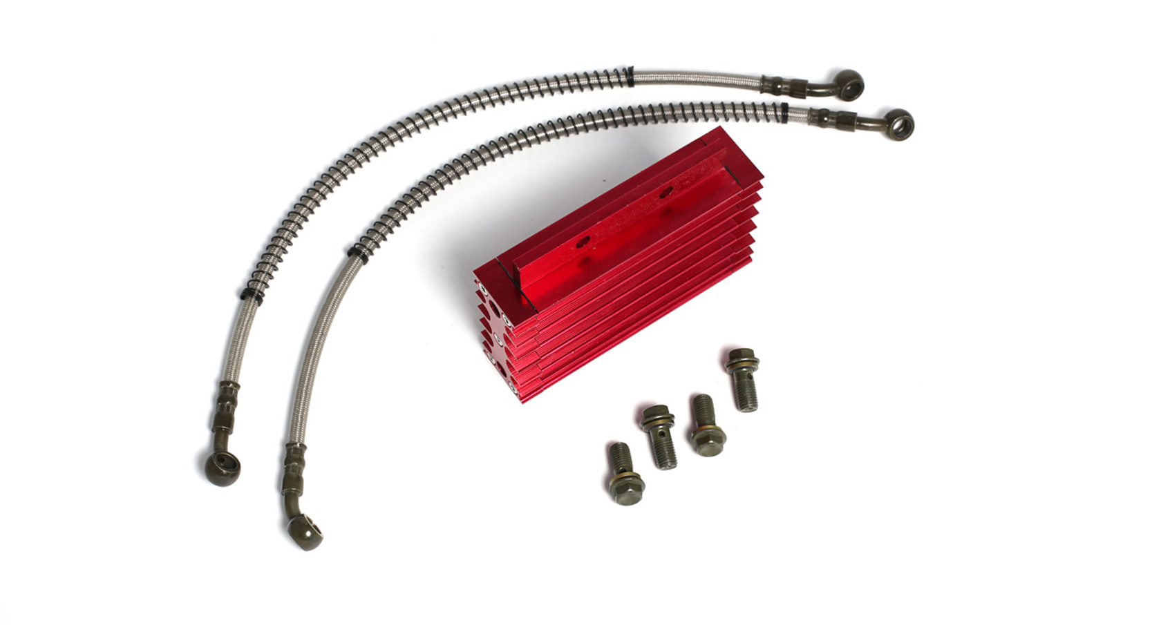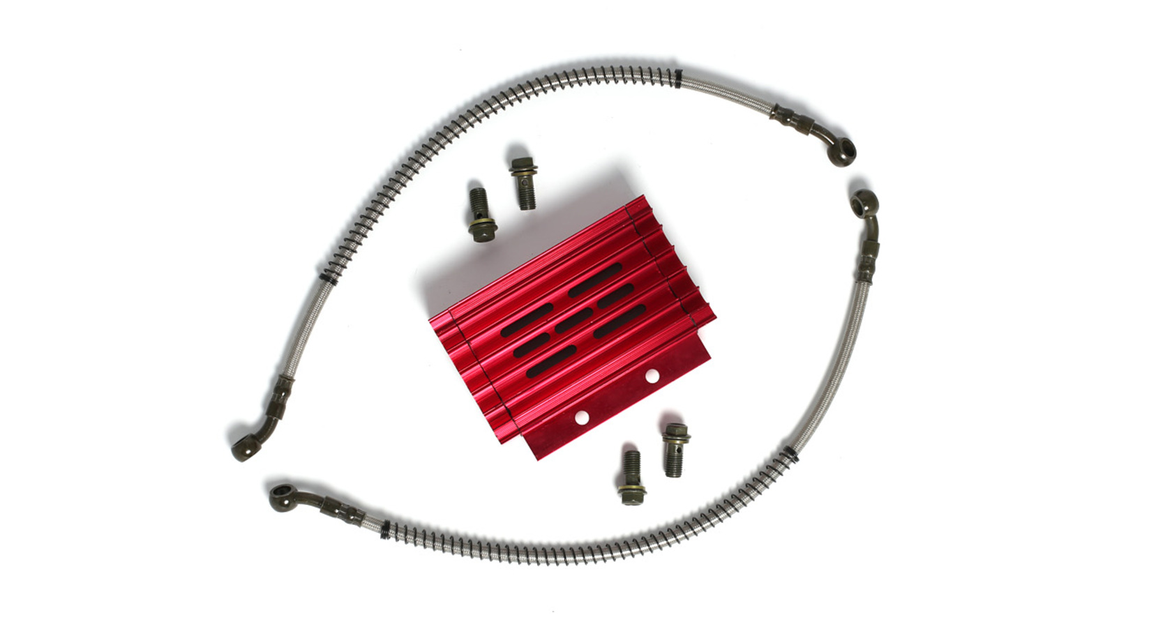 Эффективный радиатор масляного охлаждения с корпусом из алюминия, выполненный по технологии CNC, ярко-красного цвета. Предназначен для установки на 90% питбайков и мопедов с объёмом двигателя от 125 до 190 см³. Обеспечивает стабильное охлаждение масла, снижая риск перегрева двигателя и увеличивая его срок службы даже при интенсивной эксплуатации.