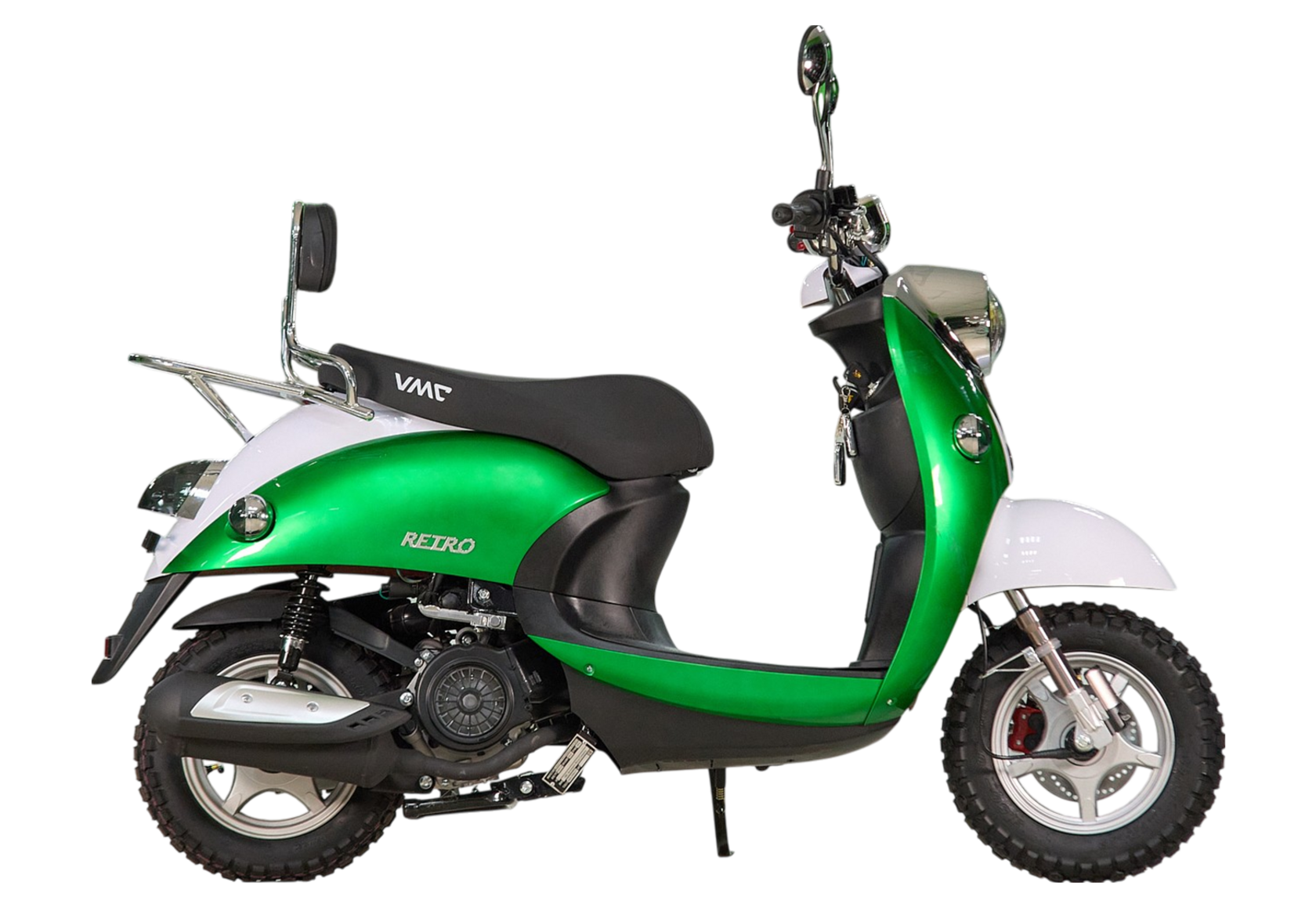Скутер VENTO RETRO 49cc (150) сигнализация (99кг/100кг) (RED/WHITE/GREEN (Италия))