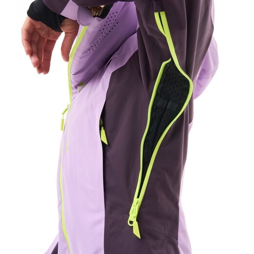 Женский комбинезон GRAVITY 2.0 Woman Purple - Plum (фиолетовый)Утепленный женский зимний комбинезон фиолетового цвета с максимально удобной посадкой для горных лыж и сноуборда. Это обновленная версия GRAVITY PREMIUM: комбинезон дополнен усилениями из плотной нейлоновой ткани в области коленей и низа спины, получил новую конструкцию ворота, появились планки на всех внешних карманах.Лёгкий, теплый, с активной вентиляцией, станет вашим верным и незаменимым помощником: эффективен и при холодной ветреной погоде, и в более теплых условиях при мокром снеге. Оснащен глубокими функциональными карманами. Максимально защищён от попадания снега внутрь. Все внешние молнии горнолыжного комбинезона – влагозащитные, швы герметично проклеены. Рассчитан на катание зимой при температуре от 0 до -20 С.Особое внимание уделено стилю: современный дизайн, элегантные линии, яркие акценты. Комфортная посадка позволит в полной мере оценить очередной спуск и даст больше возможностей и лёгкости при выполнении трюков. Сшит из мембранной ткани TORAY DELFY (Япония). За счёт специального спортивного гидрофобного утеплителя СЛАЙТЕКС ПРЕМИУМ (100 г/м² - тело; 60 г/м² - капюшон, рукава, низ штанин) комбинезон пропускает пар и не впитывает влагу. Тело «дышит» даже при интенсивных нагрузках. Поверхность утеплителя обработана термически (каландрирована), что предотвращает миграцию волокон. Изнутри спина утеплена мягкой тканью полибрушет.Функциональные характеристики:Высокий воротОбъемный капюшон сзади умеет утяжку, при необходимости может надеваться на шлемЦентральная молния снабжена тремя замкамиВентиляция под рукавами и с внутренней стороны штанинВ рукавах – эластичные манжеты из лайкры с отверстием для большого пальца, в штанинах – снегозащитные "фонарики" с резинкой на кнопке для зацепа на ботыПоперечная молния в нижней части спины ("бомболюк") позволяет легко и быстро открыть низ, не снимая при этом весь комбинезон. Молния укрыта внешним и внутренним клапаном.Верх комбинезона можно снять: внутренние подтяжки с силиконовым нанесением позволяют комфортно расположиться в помещенииЗащитные вставки из прочной ткани в нижней части штанин7 утепленных карманов: 5 внешних и 2 внутренних (в том числе для телефона)Салфетка из микрофибры в нагрудном кармане для протирания маски (отстегивается)Петля под тангенту рацииСветоотражающие элементыИзменения, отличающие модель GRAVITY 2.0:Новая конструкцияПерфорация на воротеУ капюшона осталась 1 регулировка-утяжка, расположенная сзадиУбран центральный нагрудный карманЦентральная молния стала длиннее, благодаря этому комбинезон надевать удобнее и прощеВентяляции под рукавами стали длинее, что облегчает их открытие/закрытие; снабжены системой вставок, препятствующих попаданию подклада под молнию (подклад-сетка не "зажевывается")Появилось усиление из плотной нейлоновой ткани в области коленей и низа спиныНадпись Dragonfly у центральной молнии стала меньше и сменила расположение, надпись DF на вороте и на левом плече убрана, надпись Gravity на правом предплечье сменила шрифт, появилась небольшая надпись DF c мелким текстом на левом предплечьеМолнии внешних карманов закрыты планкойУбрана пата с полукольцомПоявились короткие светоотражающие нанесения-полоски на плечах (спереди и сзади), при этом длинные светоотражающие полосы убраны