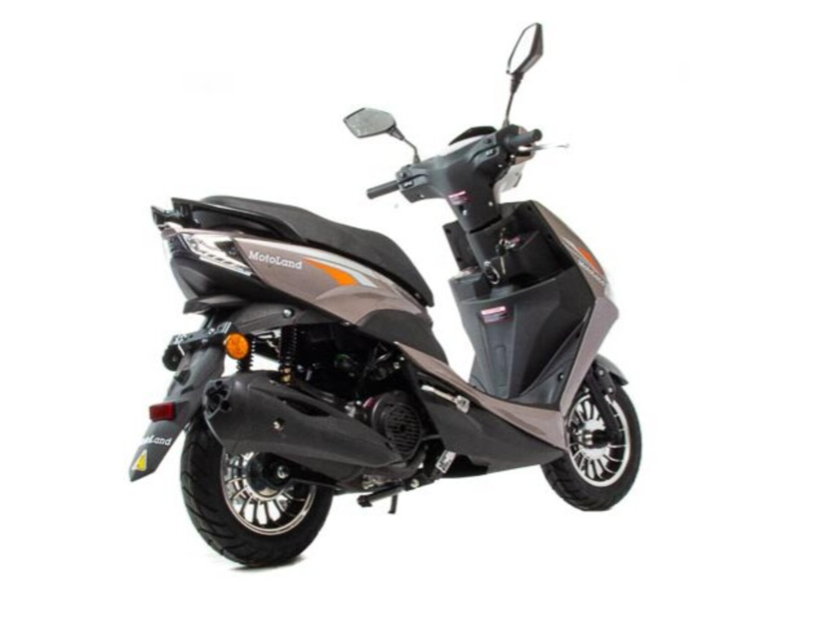 Представляем Вашему вниманию мощную модель скутера MotoLand FС 150.Эта модель выделяется рядом отличительных особенностей, высоким качеством, легкостью в обслуживании и продолжительным сроком службы.Установленная резина позволяет ездить не только по асфальту, но и по грунтовым дорогам. Двигатель с принудительным воздушным охлаждением, не перегревается даже в сильную жару.На скутере установлен бензиновый одноцилиндровый четырехтактный двигатель 157 QMJ, мощностью 10 л/с и рабочим объемом 150 см3. Этот четырехтактный сильный агрегат очень достойного качества, показывает большую надежность, тяговитость и экологичность.Скутер оборудован вариатором и не нуждаются в каких либо манипуляциях с переключением скоростей. Это очень удобно при эксплуатации и не вызывает сложностей, просто сел, повернул ручку газа и поехал. Подвеска - передняя вилка телескопическая и два задних амортизатора. Приборная панель — электромеханическая. Передний тормоз — дисковый, задний — барабанный. Колесные диски литые алюминевые, на которые установлены качественные покрышки 130/60-13". Выдерживает нагрузку до 150 кг, что позволяет без труда передвигаться с пассажиром.Под сиденьем есть багажное отделение, имеются зеркала заднего вида, боковая подножка, АКБ. Система запуска кикстартер + электростартер. Система подачи топлива карбюратор. Объем топливного бака 5 л. Габариты: 1680 х 640 х 920 мм. (без учета зеркал)